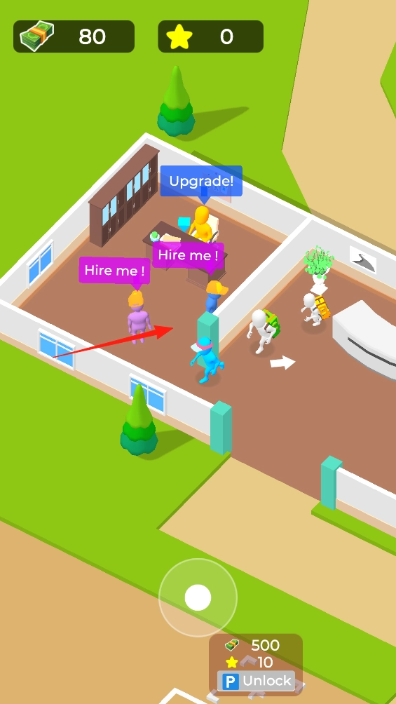 进入办公室场景后,若遇到带有“Hire me!”标识的角色,选择雇佣该角色,需消耗相应资源,即可让新角色加入团队。借助这一雇佣机制,能够扩充员工阵容,体验经营玩法中的人员管理环节,进而感受团队不断壮大带来的成就感。