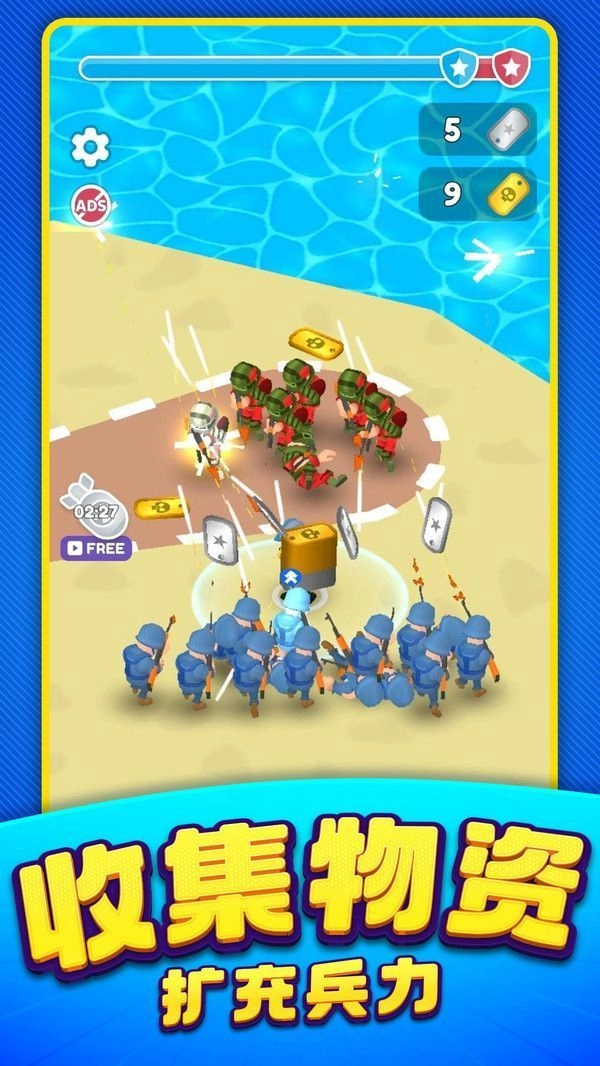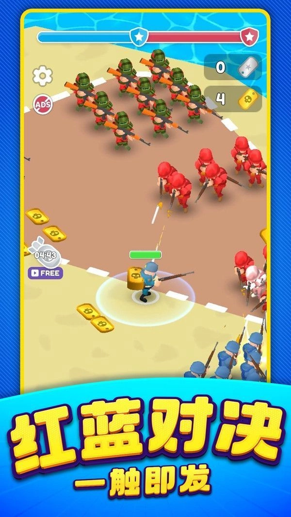1.在这款游戏里,你可以自由选择红蓝两支队伍,指挥它们参与战斗,整个过程需要你精心谋划策略,非常考验脑力。