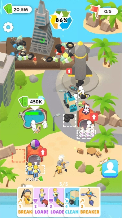 4、玩家可升级清理机的速度、容量和功能,使后续关卡的清理效率更高。