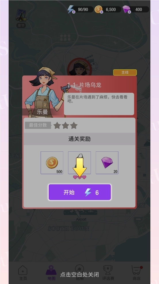 4、点击地图,开始通关挑战;