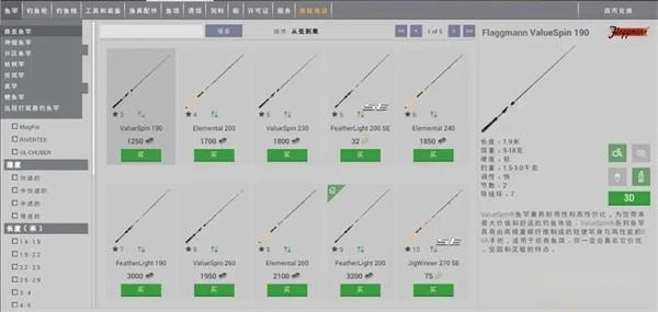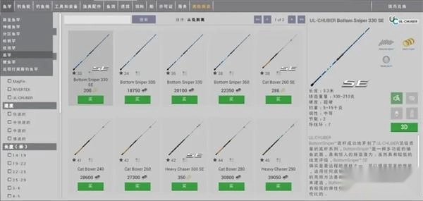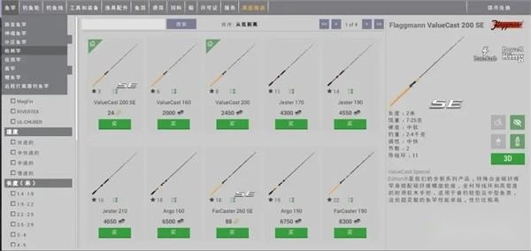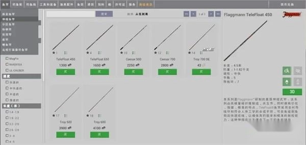讲完路亚竿,接下来和大家聊聊浮钓竿。浮钓竿主要有两种类型,其中一种是伸缩鱼竿,这里推荐大家选择7米的伸缩杆。因为竿身比较长,提鱼的范围也更远,作钓时能在7米范围内瞬间把鱼提起来,所以它也被叫做“秒提杆”。而游戏里这种秒提的设定,还让玩家在有船的情况下,不用在意竿本身的最大钓重限制,不管鱼的体型大小,都能直接秒提起来。