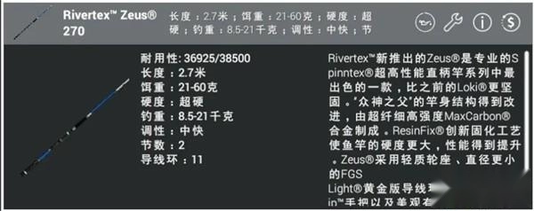 Rivertex Zeus 270(我们常叫它大270)是我们后期使用频率很高的一款路亚竿,它的饵重范围在21到60克之间,对付中大体型的鱼类特别合适。虽说竿身长度不短,但即便用14克的小饵也能抛得很远,不管什么作钓环境都能适配,总之就是相当好用的一款竿子。