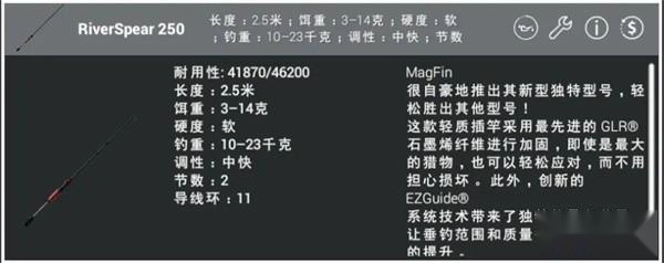 RiverSpear 250是随蒙古地图一同推出的新款钓竿,它的诞生填补了此前小饵钓大鱼专用竿的空白,适配10克以内的假饵,在抛投距离和钓重方面表现出色。
