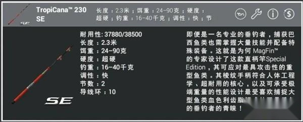 一般来说,后期使用的枪柄杆基本都是顶级或次顶级的,所以这里给大家推荐当前版本的次顶级枪柄杆。为什么不推荐顶级的呢?因为这版本最好的水滴轮拉力只有40kg,为了在搭配装备时能把卸力打满,就选择了拉力同样是40kg的次顶级枪柄杆。