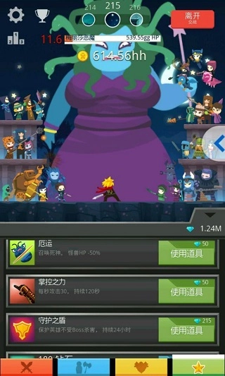 这个游戏的数值增长速度相当快,相应地升级所需的次数也非常多——游戏里大概有三十多个英雄,每个英雄要升到6000级,之后还能再进行三次6000级的强化升级,另外还有关键的点击BOSS环节。