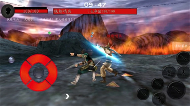过关提示:进入场景时初始装备是匕首和暗器,场上共有三名手持长枪的哨兵。匕首克制长枪,用→A↑↑A的连招就能轻松应对,但要特别留意开局正对面的那个哨兵——他血量见底时会往军枪哨兵长的方向逃窜,务必快速将其解决,否则三个哨兵聚在一起会让战斗陷入被动。若成功击杀第一个哨兵,记得捡起他掉落的长枪来对付剩下两人,用↑A→←A↓↓↑A的连招就能实现连续打击。