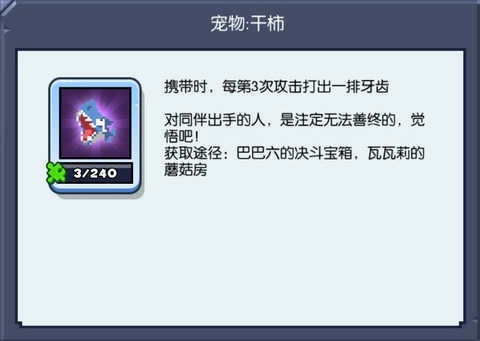 这只小家伙模样酷似小鲨鱼,眼角还挂着晶莹的泪珠,仿佛藏着一段不为人知的过往。当你带上它之后,每进行三次攻击,它就会发射出一排牙齿,对范围内的目标造成打击。有意思的是,这招不仅能用来攻击敌人,从理论上来说也能对队友使用——不过还是建议大家手下留情哦。