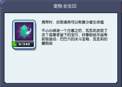 这件充满神秘感的古物,传闻来自一处古老遗迹,有着延年益寿的说法。但它的实际作用是,当玩家拾取道具时能恢复一定生命值,这对提升生存能力帮助很大,尤其适合那些热衷于探索地图的玩家。
