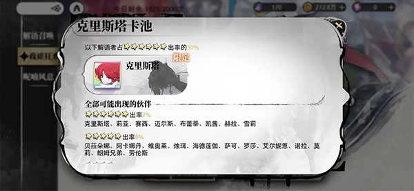 初期召唤可以获得指定六星英雄限定召唤,指定英雄概率为50%(卡牌详情可查看),此类活动需要特殊的邂逅种子,可通过晶石获取。