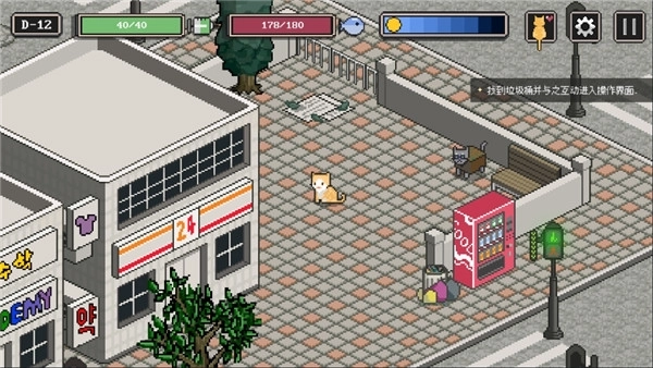 1、玩家需要在城市中寻找食物和道具,以维持小猫的健康。
