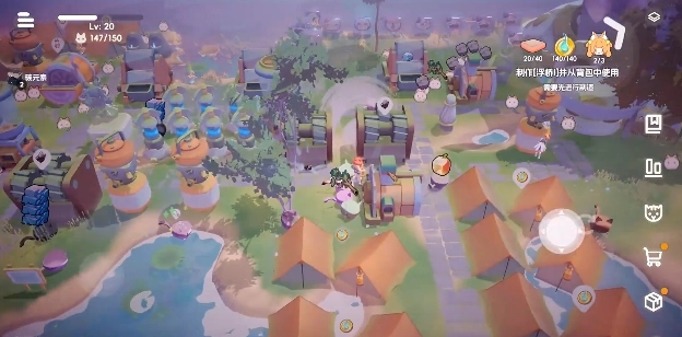 注意:在开放另一片岛屿时要及时建造新的新的工厂与帐篷,因为前期猫是不会去另一片岛上的,猫在碰到水时会极度减缓速度甚至淹死,所以要及时放置资源,只有后期解锁的存放类建筑派出的猫猫可以去别的岛上