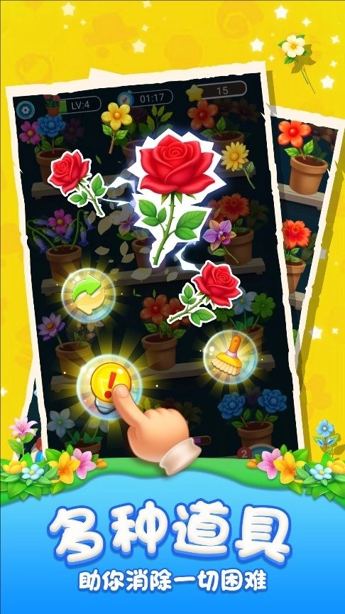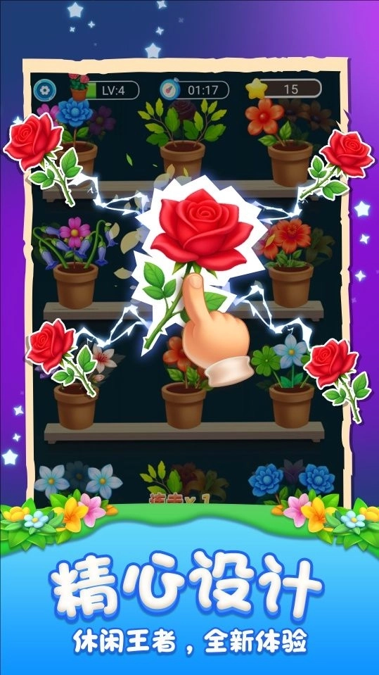 3、独立的花朵和消除相结合,让你在享受美感的同时也能体验到游戏的乐趣。
