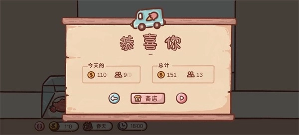 4、一玩家可以查看服务了多少顾客,并赚了多少钱。