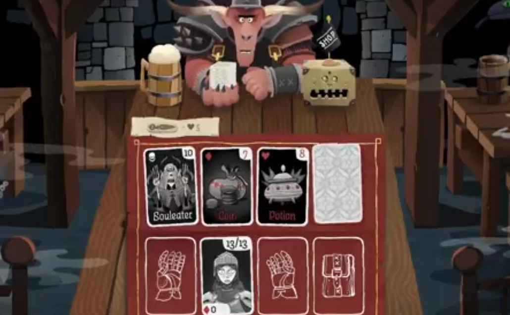 要赢得游戏胜利,你得把对手所有的地牢卡牌都清空才行,而牌堆的高度就代表着还剩下多少卡牌。