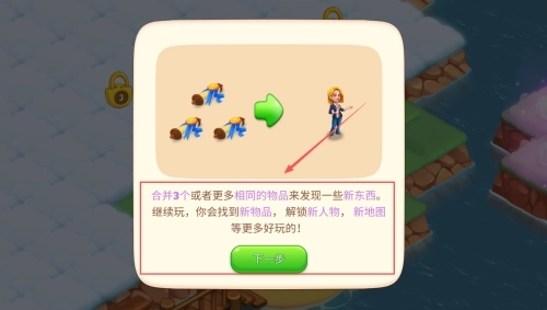 1、基础合并玩法采用拖动相同物品进行三合一升级的机制,无论是简单的农作物还是复杂的建筑都遵循这一规则,连续合成还能触发连锁反应以获取额外奖励。