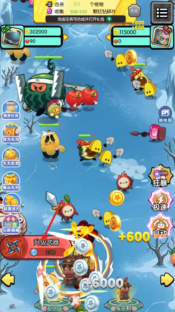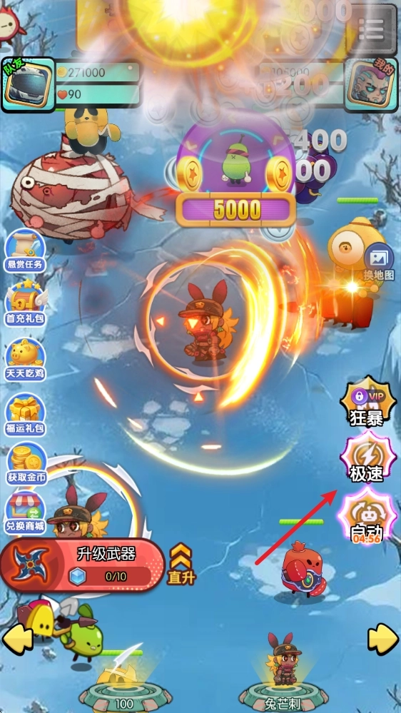 3、不断消灭涌来的敌人就能获取大量材料,以此提升自身火力,进而迎战更强大的敌人。