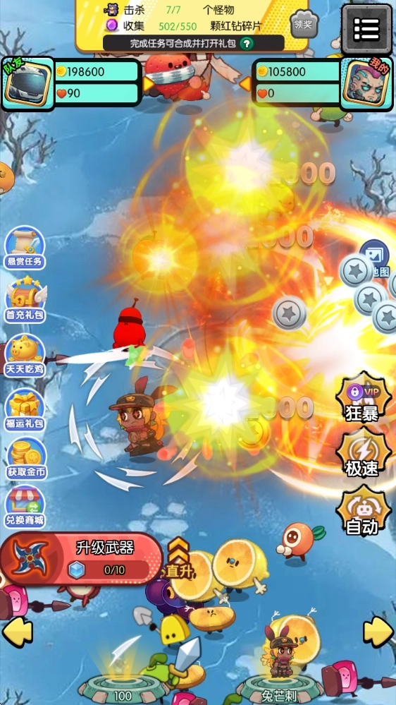 奇趣大冒险最新版是一款轻松解压的休闲割草游戏,玩法十分简单,你只需左右滑动操控角色移动,用旋转利刃横扫四面八方的来敌,击败敌人后收集材料升级武器火力,逐步迎战更强对手。游戏支持自动与极速模式,解放双手也能躺着杀怪,乐趣不减。完成多样任务积累资源,还能兑换悬赏惊喜奖励,成就感满满。画面精致细腻,战斗特效炫酷流畅,视觉体验拉满。操作简单无门槛,从老人到孩子都能快速上手,是日常放松的绝佳选择。