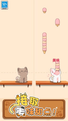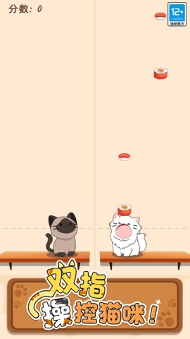 3、通过双手操控猫咪接住掉落的糕点来积累分数,当分数进度条填满时即可通关,并获取丰厚的金币奖励。