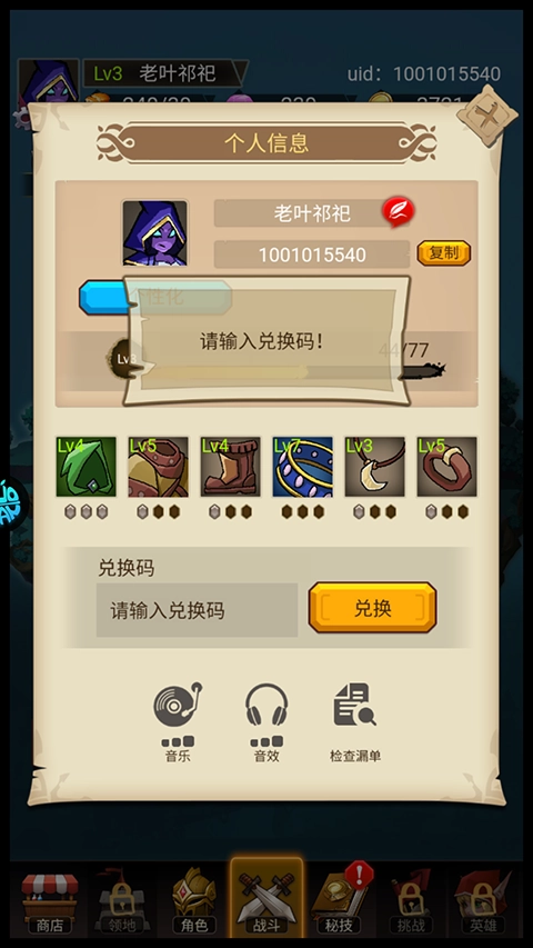 然后在弹出的界面输入兑换码(兑换码需通过第五关才能开启兑换功能)