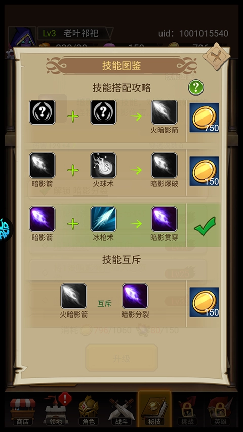 4、还可以来到秘技界面来提升技能等级。