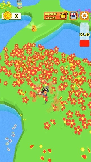 2、玩家需前往上方的花丛区域开展采集工作,右上角的瓶子完成采集后即可结束。