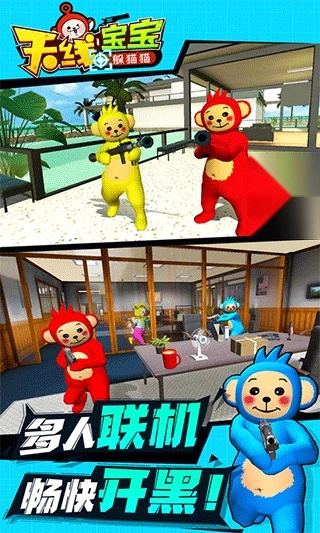 天线宝宝躲猫猫是一款趣味十足的休闲动作游戏。在游戏里,玩家能够选择不同阵营参与游玩——既可以化身抓捕方的天线宝宝,利用各类武器搜寻伪装起来的对手;也能作为躲藏方,只要不被天线宝宝发现就能赢得胜利。游戏内设置了多种不同场景,让玩家能获得更丰富的游玩体验,十分有趣。此外,游戏还提供了不同模式供玩家选择,大家可以和其他玩家联机一起游玩。