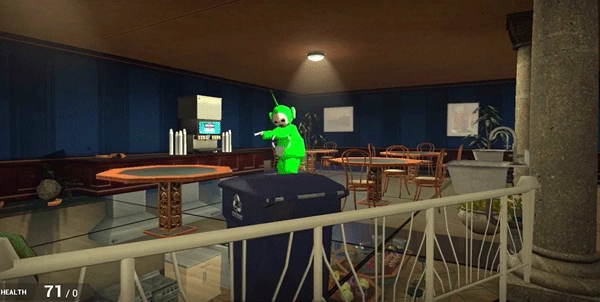 游戏开局会随机分配玩家成为隐藏者与狩猎者,这次我扮演的是狩猎者角色,原本可爱的天线宝宝形象配上各式各样的武器,视觉上就充满了刺激感。