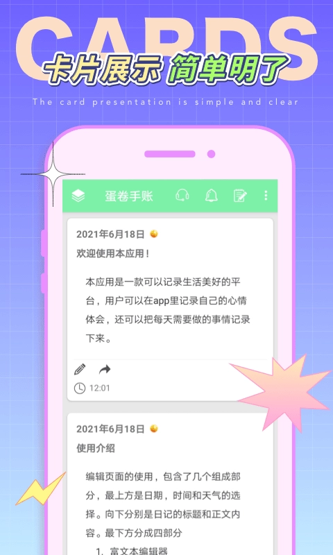 界面简洁美观:蛋卷手账的界面设计简洁大方,色彩搭配舒适,用户在使用时能获得愉悦的视觉体验。
