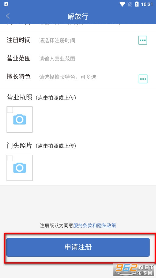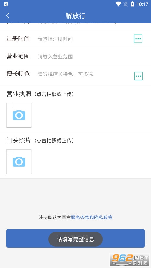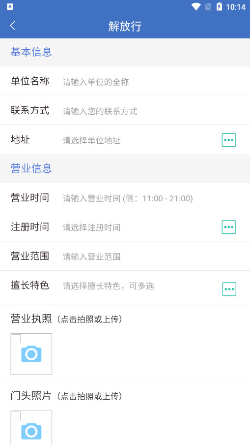 请您填写基本信息,包括单位名称、联系方式和地址;接着在营业信息栏输入营业时间、注册时间、营业范围以及擅长特色;之后点击上传营业执照与门头照片,最后完成【申请注册】操作。