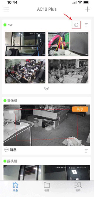 打开AC18Plus ,选择已添加的设备,点击分享按键:(如没有分享按键,该账号不是主账号);
