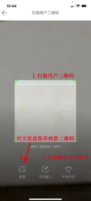 扫描对方二维码添加好友;