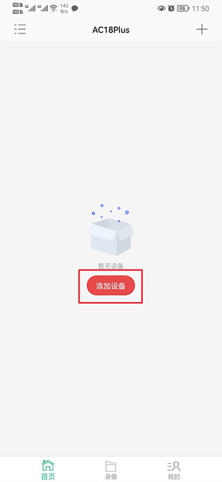 首先启动ac18plus摄像头监控软件,进入首页后找到并点击添加设备的按钮。