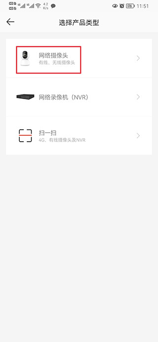 选择产品类型,如网络摄像头