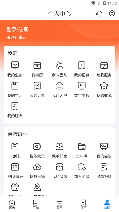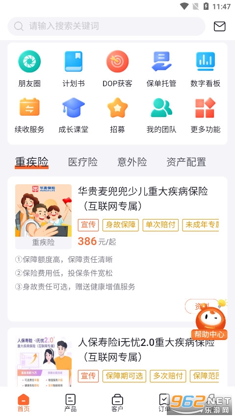 /计划书 活动管理 海报 计算器/ 服务管理 /订单进度查询、保单到期提醒、佣金到账通知、活动参与提醒、增员实名认证