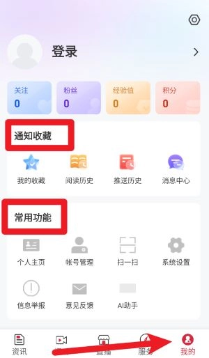 点击右下角“我的”入口后,就能使用通知收藏、阅读记录、系统设置等常用功能,方便进行个性化管理。