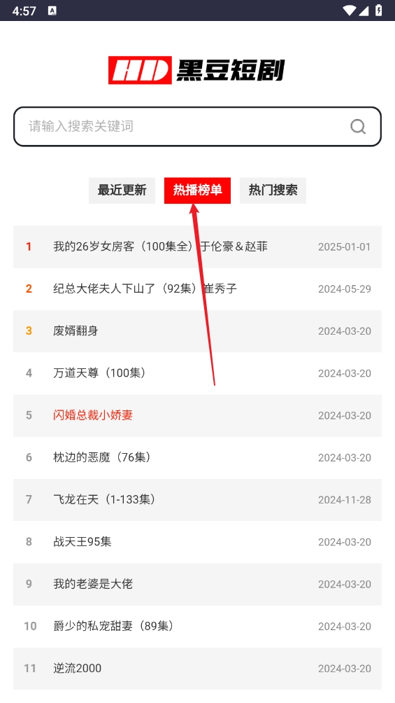 接着进入热播榜单板块,就能随时查看对应的榜单短剧,具体可参考图示。