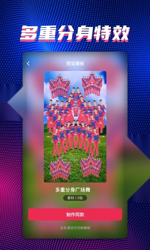 莲花舞、叠叠舞、分身等特效,只需一键操作,就能生成满是创意的视频作品。