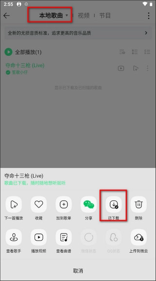 已添加的歌曲会出现在本地歌曲列表里,大家可以自行查看。
