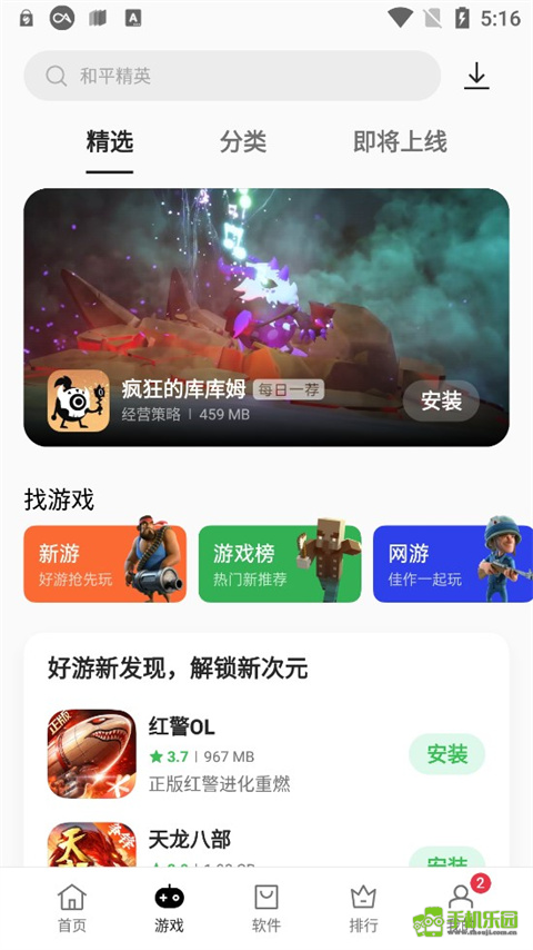 游戏板块的内容特别丰富,划分了新游戏、热门榜、网游榜等不同类别,能帮助喜欢玩游戏的小伙伴们快速找到适合自己的游戏尽情游玩。