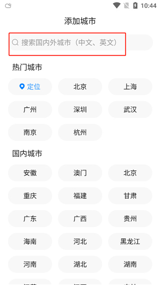进入准点天气最新版后,打开软件,手动添加你所需的城市。