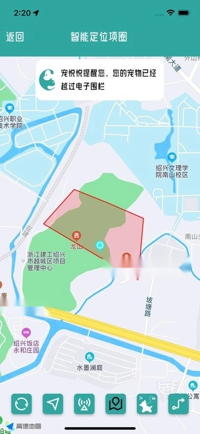 可以查看宠物当前所在的位置,同时具备导航、电子围栏、电子牵引、历史轨迹查询等功能。
