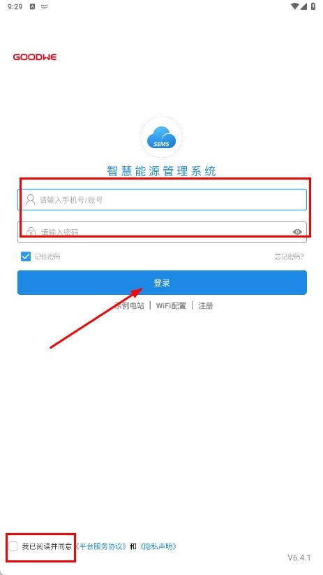 2、在登录页面输入手机号或账号以及密码,勾选同意相关协议后,点击【登录】功能按钮。
