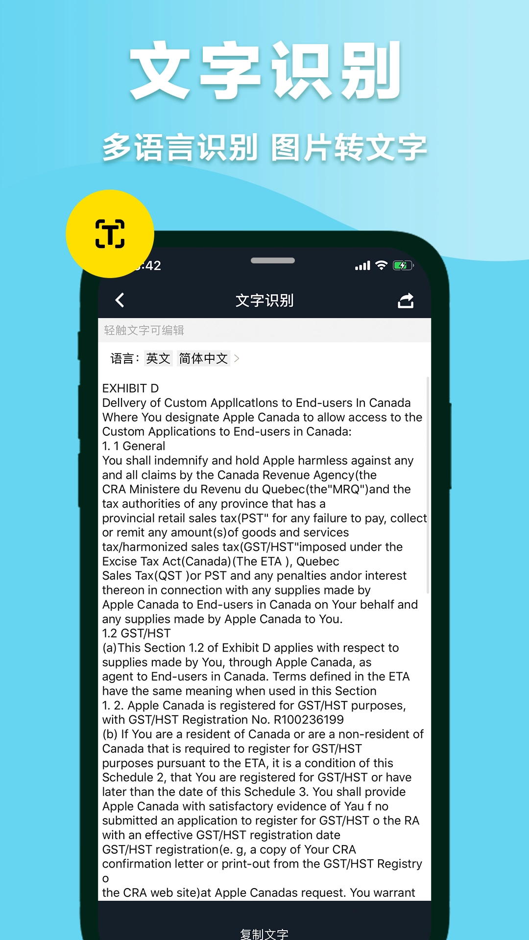 3. 高效便捷:支持一键操作,能快速完成文档扫描与文字识别,显著提升工作效率。