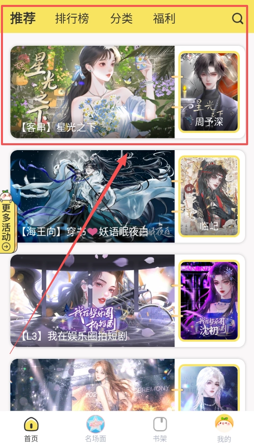 3、阅读时碰到心仪的名场面,可切换至“名场面”专区,该专区设有正在开展的投票活动,能助力提升名场面的热度。