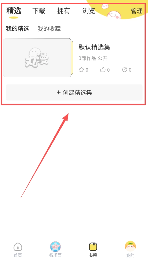 4、要是碰到想再看的作品,别忘了点击收藏添加到“书架”里。你也能在书架中创建专属的“精选集”,给作品按类别整理好。
