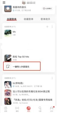 3、在“创建歌单”板块的下拉菜单里,找到“导入外部音乐”这个选项。