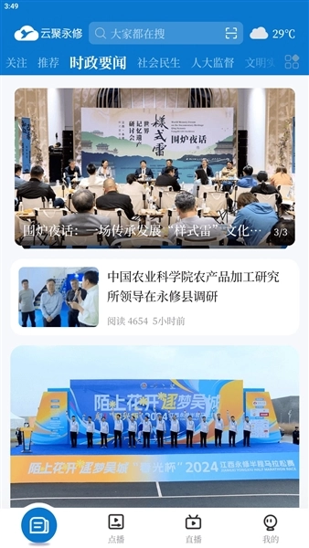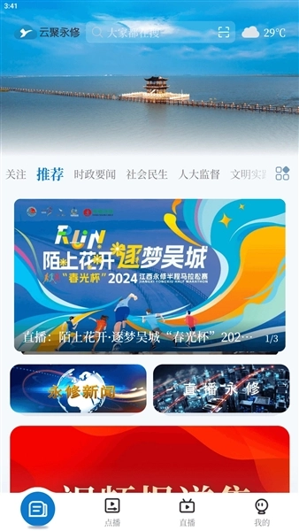 云聚永修客户端是永修县融媒体中心开发的专业新闻阅读服务应用。它整合了永修县时政、民生、医疗、教育等领域的新闻资讯,用户能通过该应用及时掌握本地最新动态,并对相关事件发表评论或提出建议。除了图文阅读功能,应用还支持点播、直播等多元化观看形式,用户可根据喜好自由选择。此外,应用内所有信息均经权威机构审核发布,用户可安心浏览。