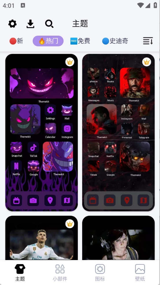 DIY主题组件库是一款功能全面的手机美化工具,涵盖主题、壁纸、图片与小部件等丰富内容。它有着细致的分类体系,能适配多种不同型号的手机,而且所有资源都可免费使用。通过它,你可以让手机桌面变得与众不同,这里的各类壁纸和图标均为高清无水印版本,能帮助你轻松自定义手机桌面的样式。