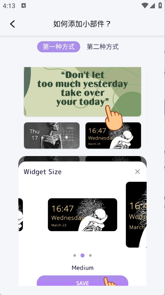 点击桌面上已安装的小部件,即可打开“我的小部件”页面。在该页面中浏览并找到您想要修改的小部件,接着点击它。