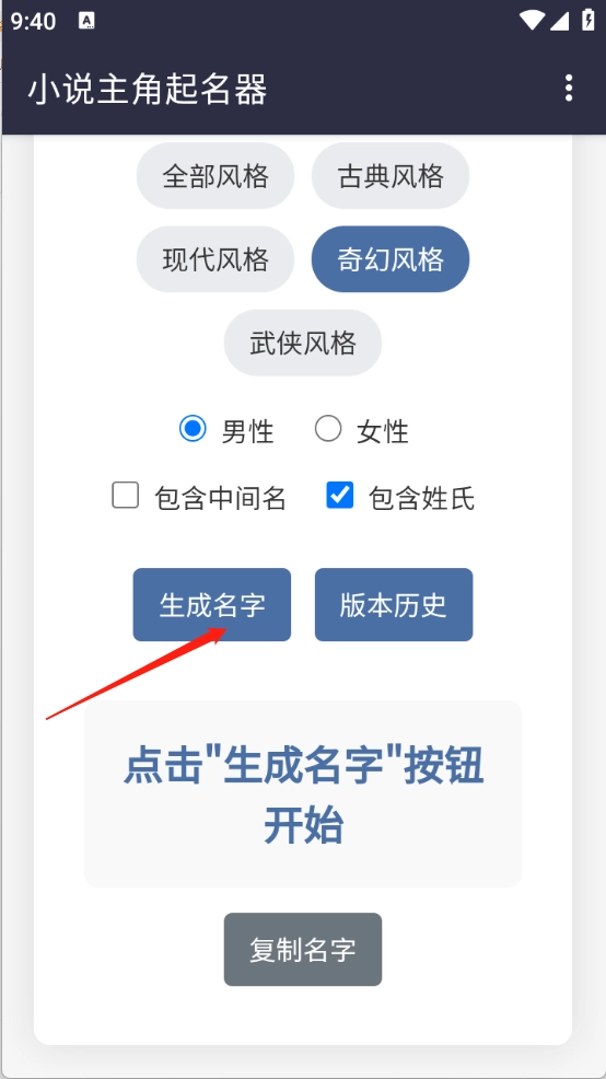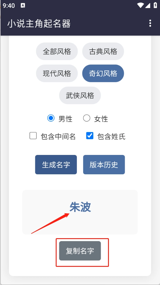 3、一键生成功能,能为用户节省时间,助力其快速找到心仪的小说人物名字。